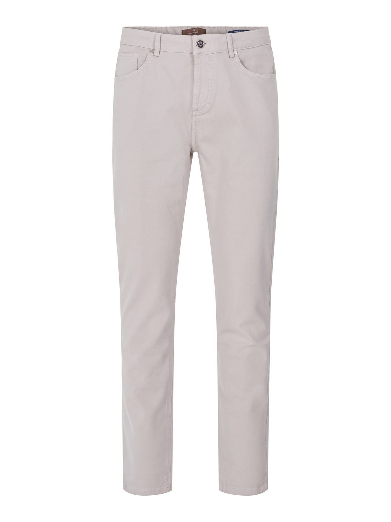 Vår nye Theo 5-Pocket bukse i supersoft bomullskvalitet med behagelig stretch. Denne moderne buksen har en klassisk modell med medium livhøyde. Tidløs sand-farge som passer perfekt til sesongens antrekk. Kombineres gjerne til sesongens skjorter og strikk. Denne må prøves på!