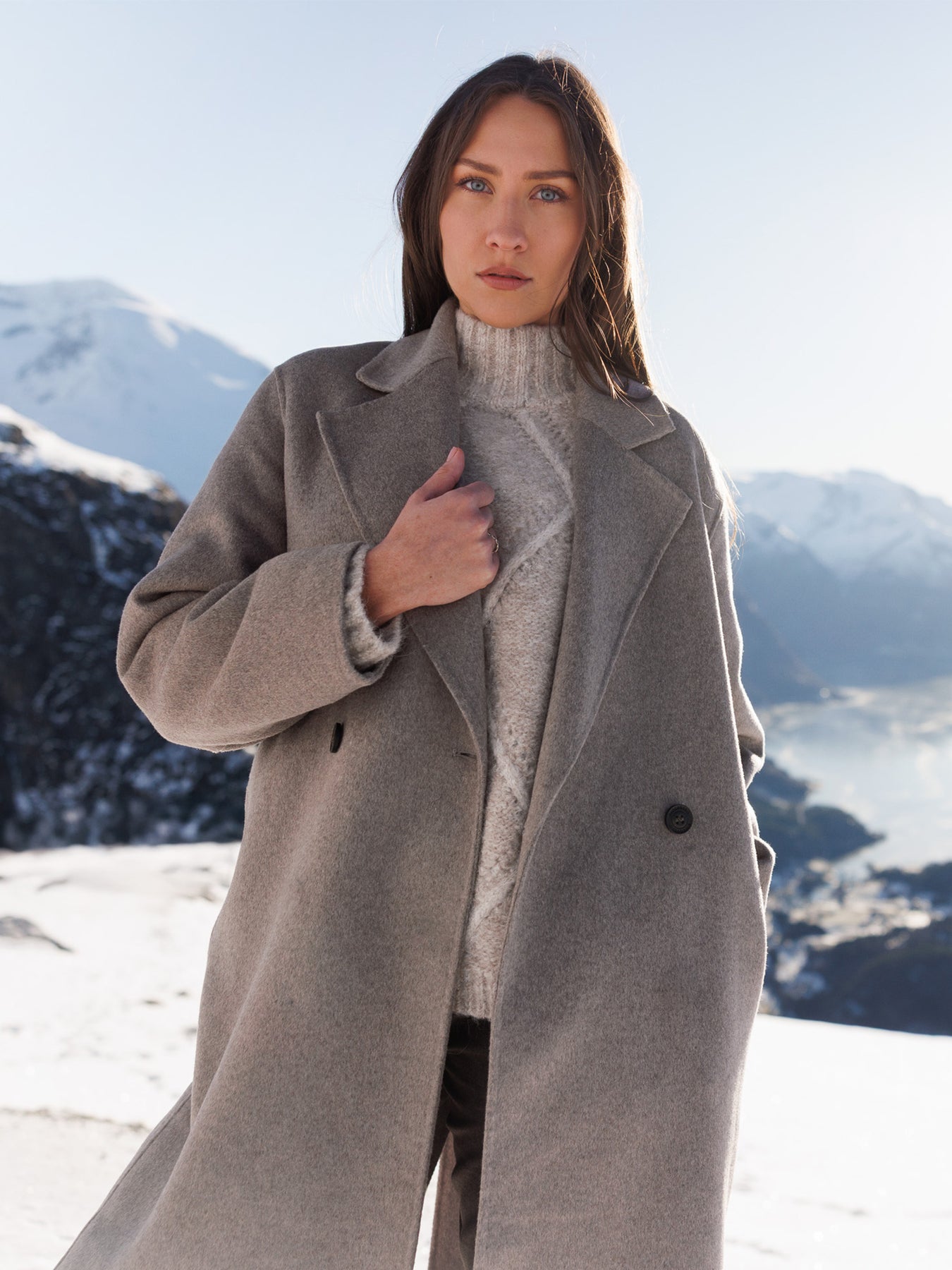 Rosie Coat er den perfekte, romslige kåpen til høstsesongen. Den har en rett modell med store slag. Enkel splitt bak. Lettere oversized passform. Laget i en utrolig behagelig ullkvalitet, som gjør kåpen til et varmt og behagelig valg til dine antrekk. Klassisk beige melert farge som passer alt!