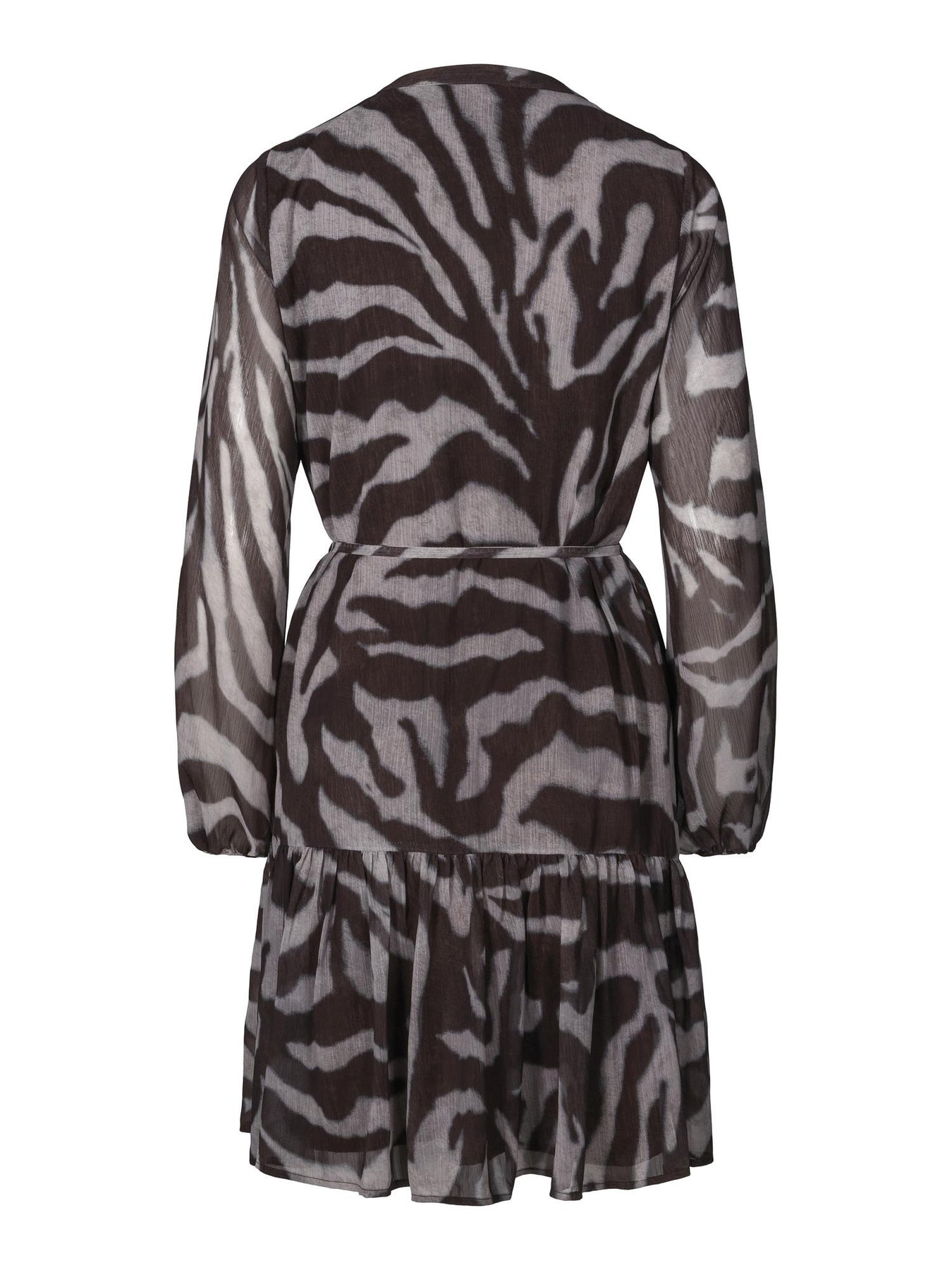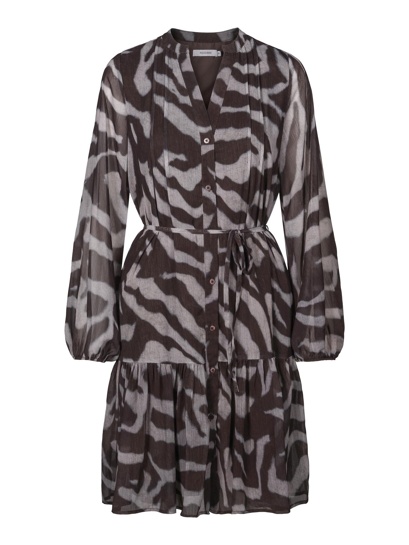 Hedda Dress er en ny kjolemodell denne sesongen i utrolig delikat print til sesongens festigheter. Den har en flott fasong med v-neck, ton-i-ton knepping helt ned og transparente ermer. Knyting i midjen som gir kjolen en utrolig fin fasong. Lett, behagelig og vakker. Denne må prøves på!