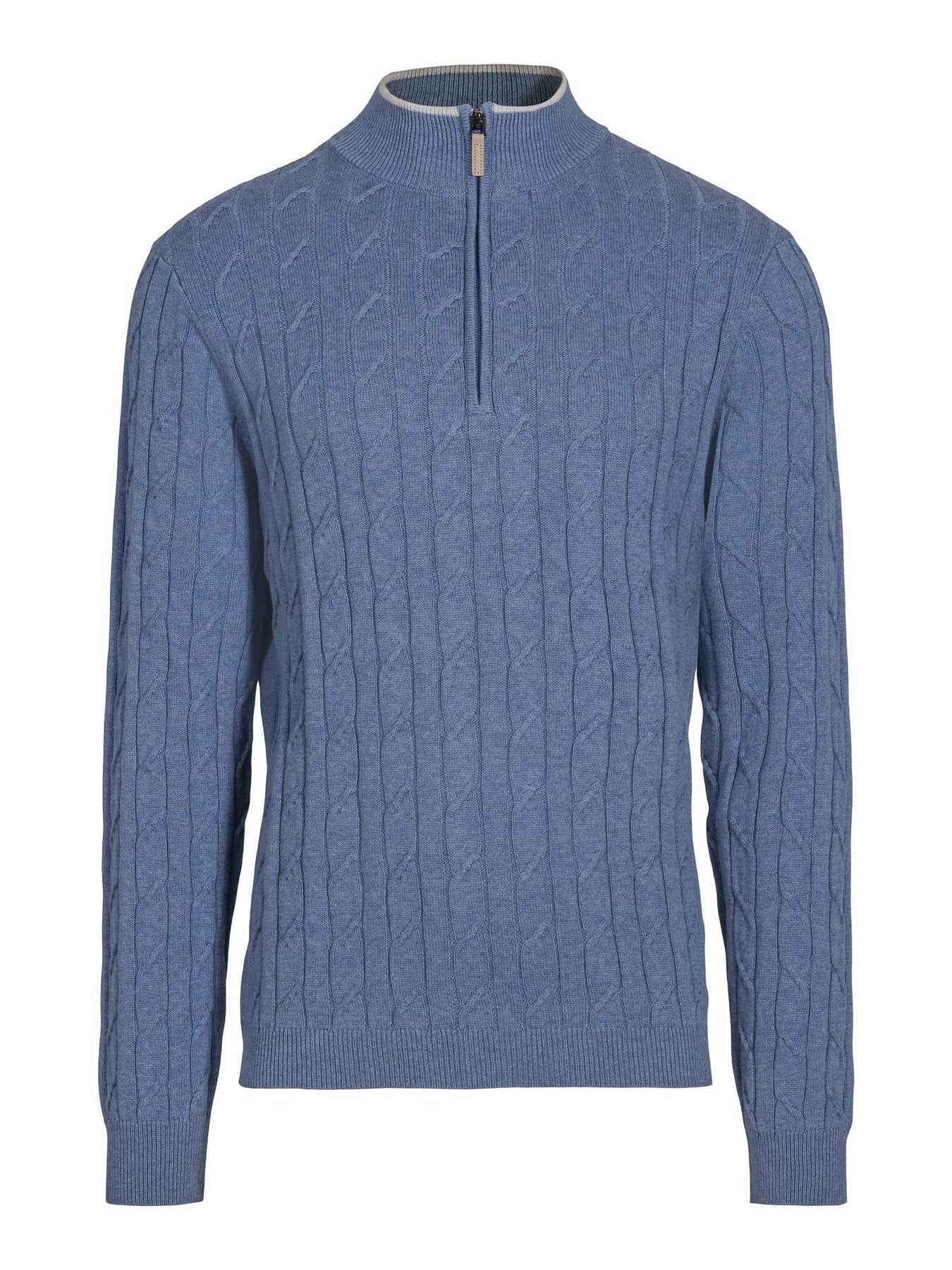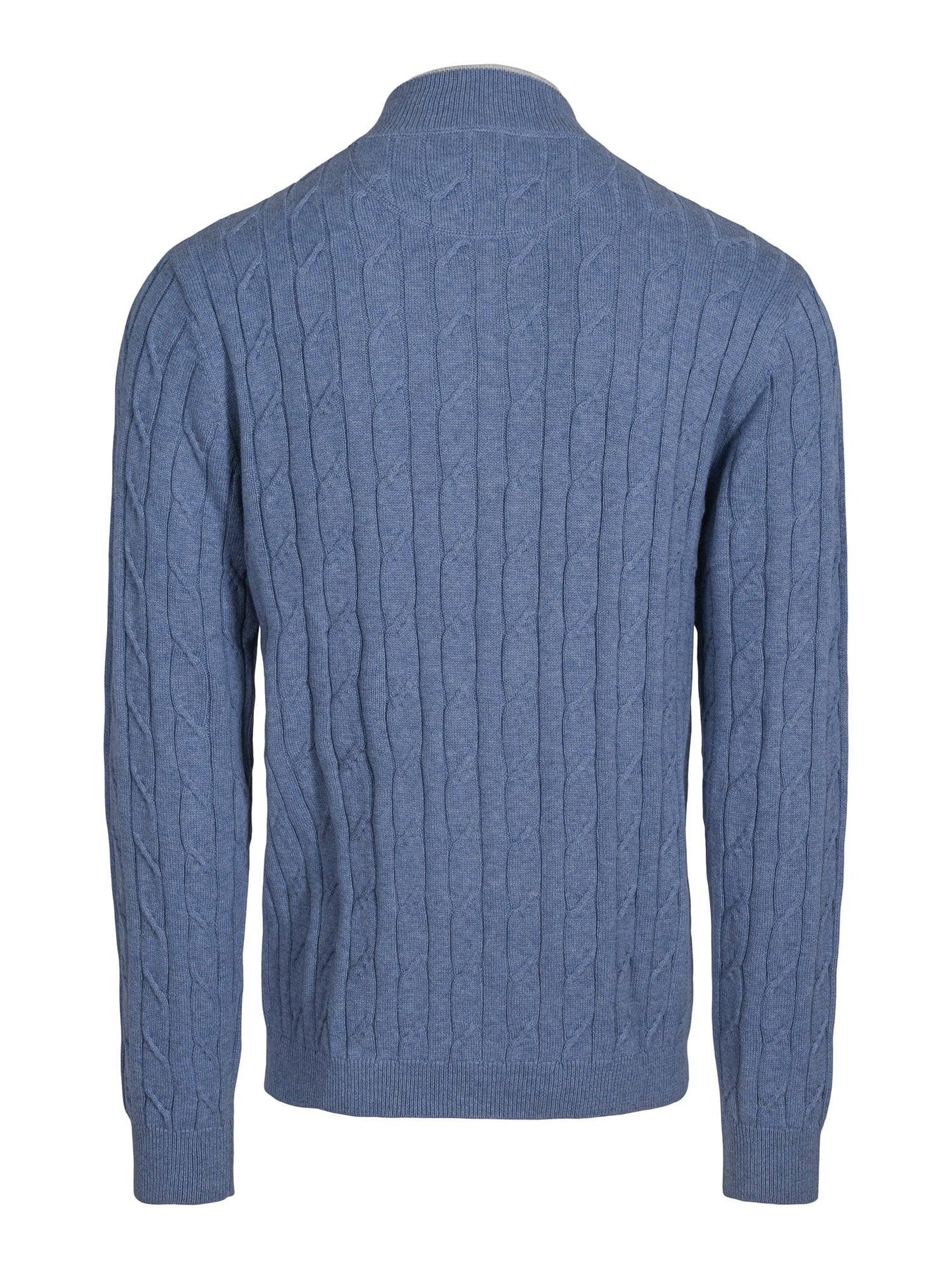 Favoritt Sivert Zip er tilbake! Utrolig delikat strikket mønster i stoffet. Genseren har halv-høy hals med glidelås. Tidløs og elegant genser som passer fint alene eller over sesongens skjorter. Kombineres gjerne med våre Tom-bukser. Laget i en behagelig bomull/cashmere kvalitet.