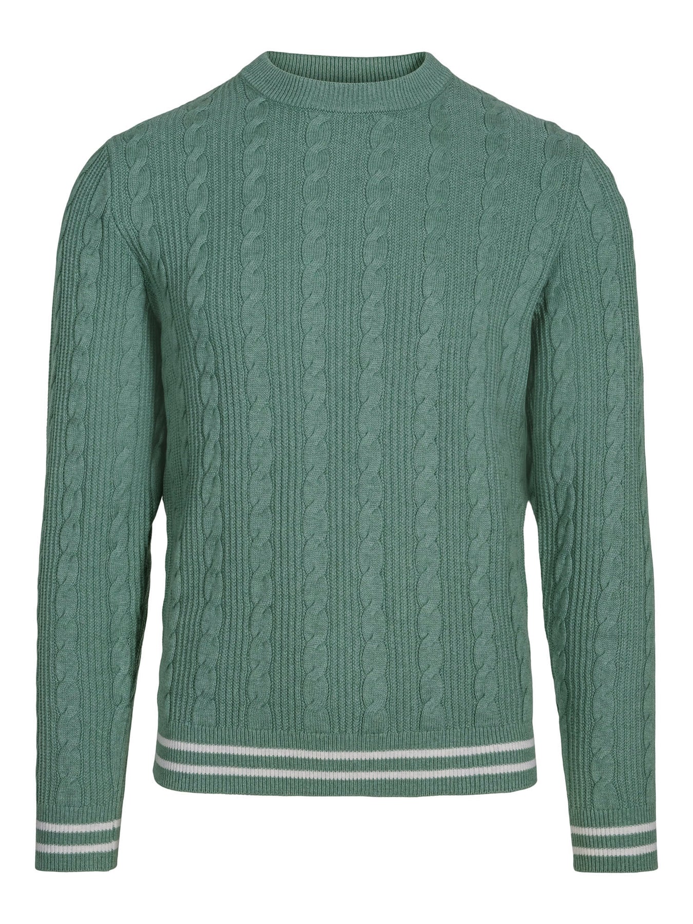Brad Knit er en ny modell denne sesongen i delikat kabelstrikk. Laget i en myk og behagelig bomull/cashmere kvalitet. Genseren har en klassisk rett passform med rund hals og ribbestrikket kant nederst og på ermene. Elegante vertikale detaljer nederst i cream farge som gir et fint uttrykk til genseren. Tidløs genser som passer godt til sesongens antrekk.