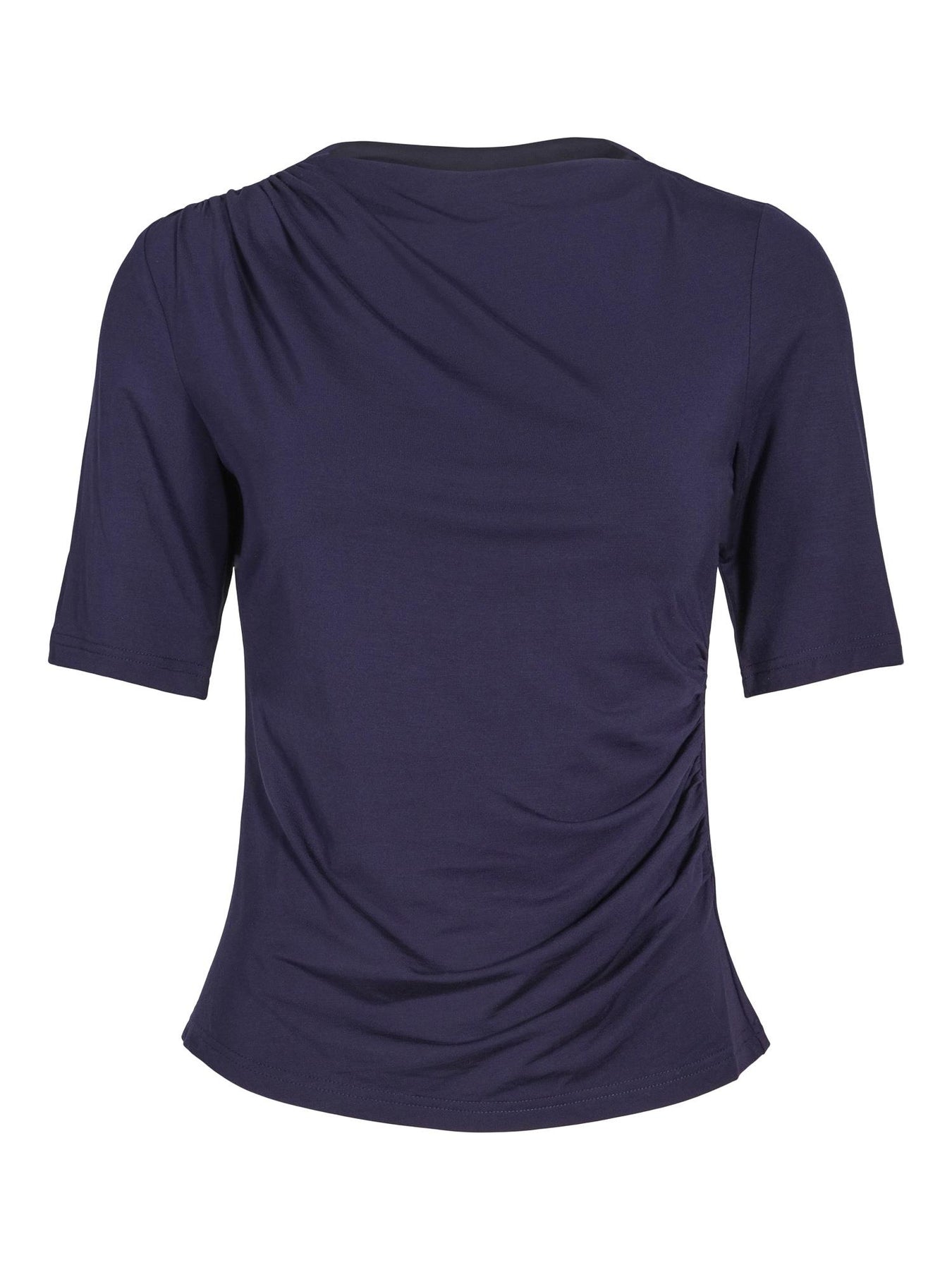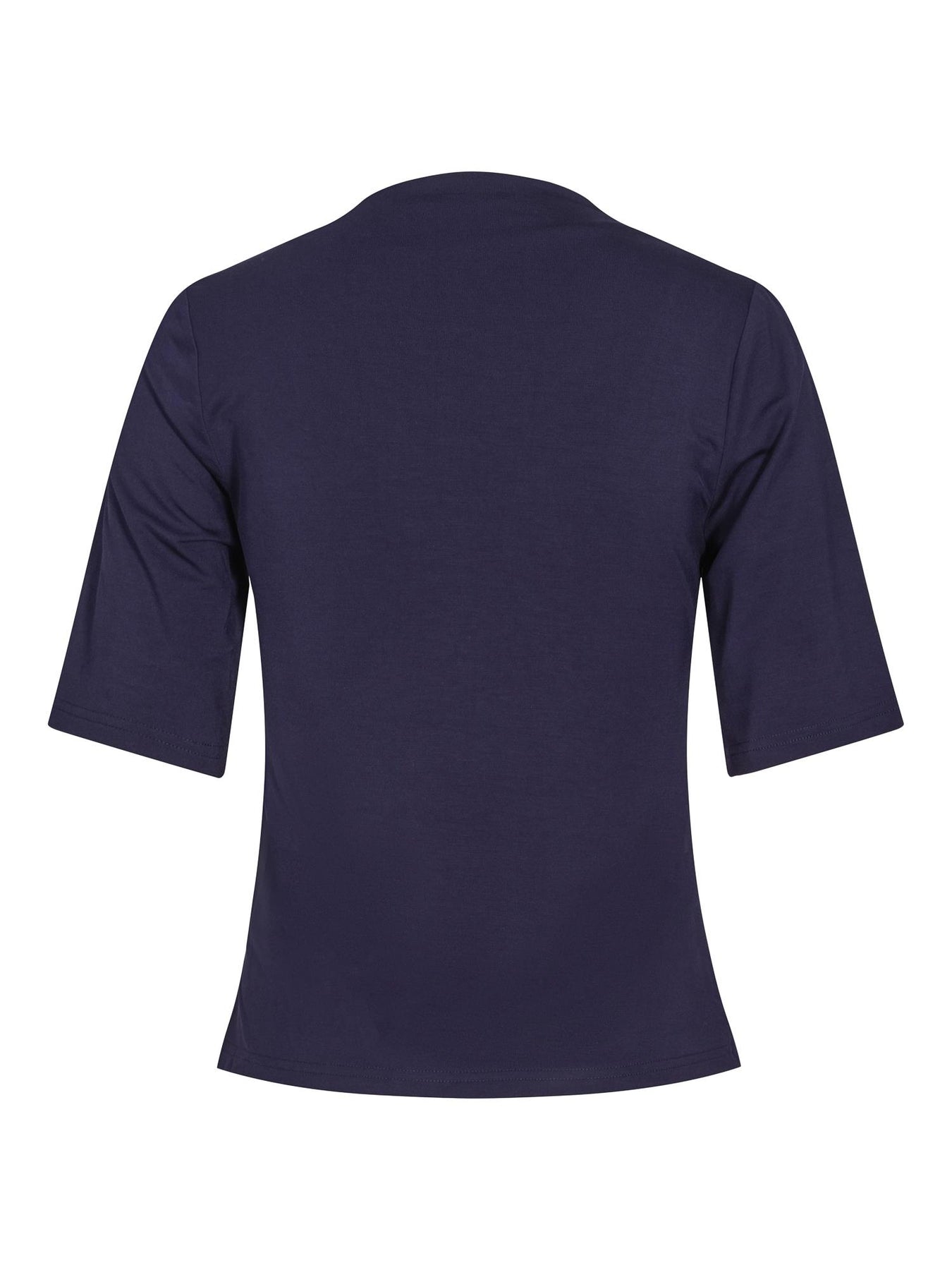 Anikka Top i utrolig behagelig jersey kvalitet med god stretch. Høy hals og korte ermer med lette detaljer i stoffet øverst på skulderen. Klassisk topp i navy farge med det lille ekstra. Passer perfekt i garderoben. Meget komfortabel topp som kombineres lett til sesongens antrekk.