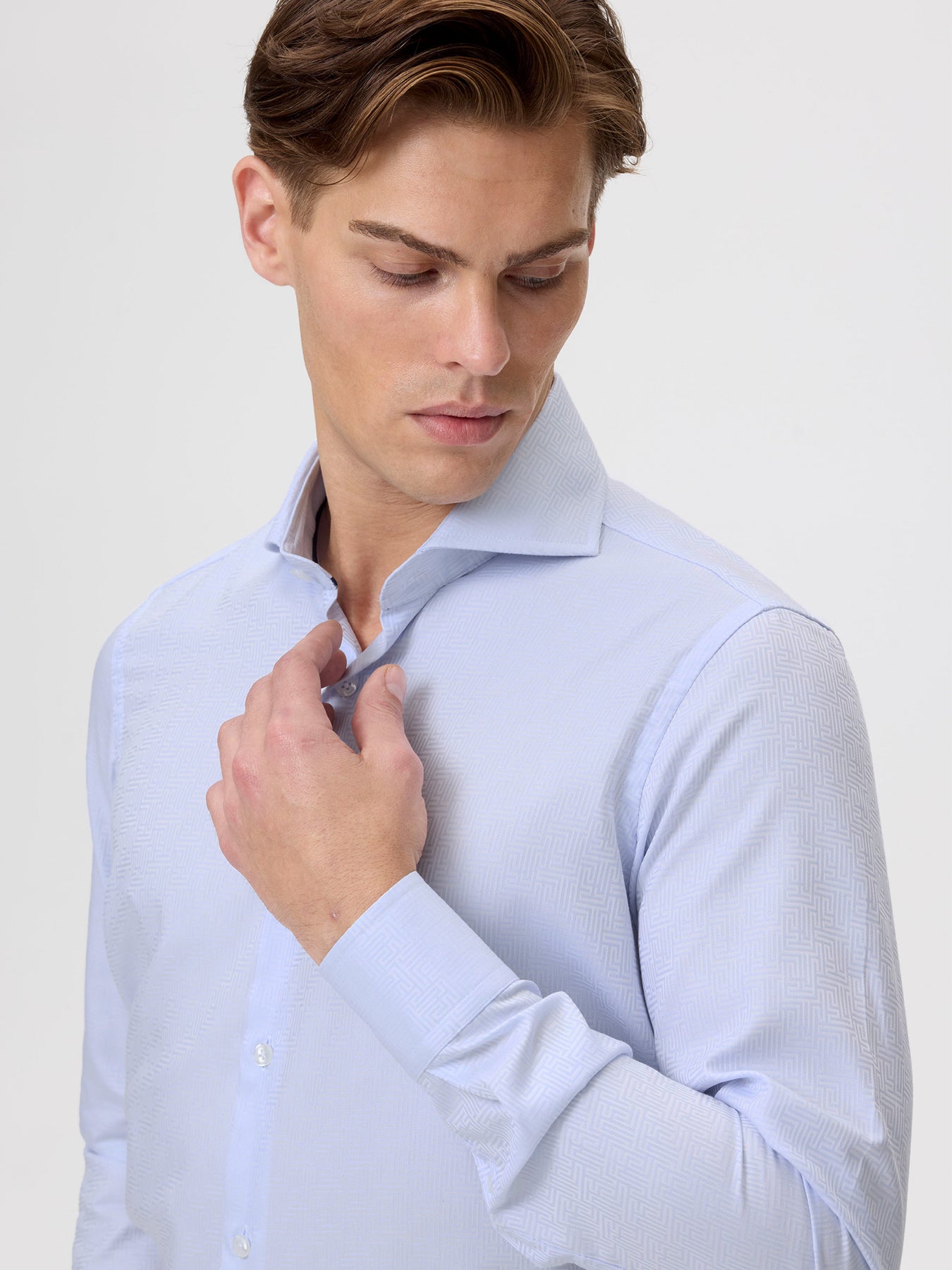 Chris Tailor Fit i behagelig bomull/tencel kvalitet. Utrolig flott skjorte med lett melering i stoffet. Ton-i-ton knapper som gir skjorten et elegant uttrykk. Klassisk skjorte med moderne cutaway krage som passer godt til formelle anledninger og gir skjorten et elegant uttrykk. Kombineres gjerne til våre bukser.