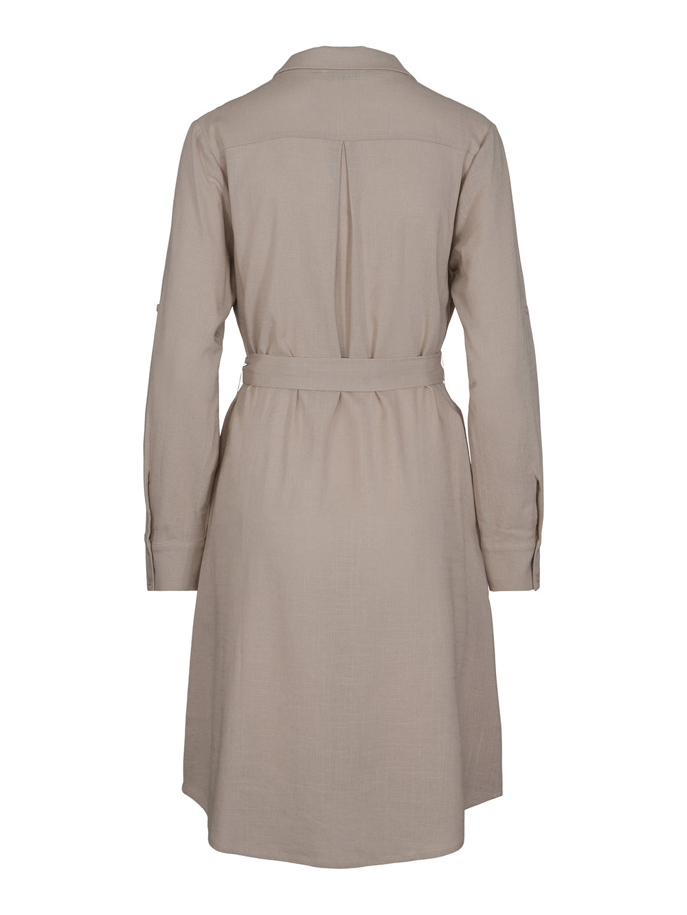 Deniz Dress er en superfin skjortekjole som passer godt til alle anledninger. Kjolen har oppbrettbare ermer, knyting i livet og lommer i sidene. Knepping helt ned. Medium lengde. Behagelig og lett lin blanding som er perfekt til sommeren og varme dager.