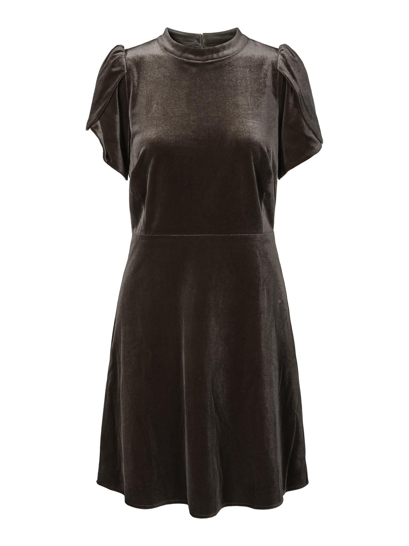 Cheryl Dress er en ny kjolemodell denne sesongen i behagelig velour kvalitet. Klassisk kjole med round-neck og korte ermer med detaljer. Den er lettere innsvinget som gir kjolen en feminin fasong. Lukkes med skjult glidelås i ryggen. Vakker jordfarge til sesongens festligheter.